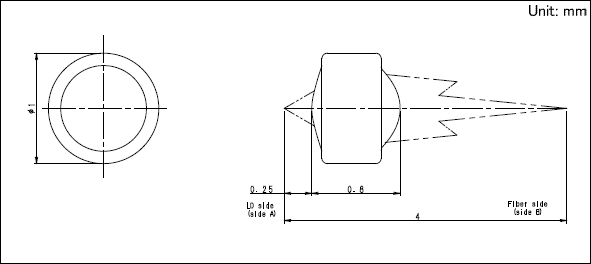 ALPS非球面玻璃透鏡 裸鏡頭(圓形)LD & 光(guāng)纖耦合FLGD1SG07B設計(jì)波長(cháng) λ(nm)1,310 适用(yòng)波長(cháng)示例 λ(nm) 1310/1550 倍率M 5 焦點距離(lí) f(mm) 0.55 L1[WD](mm) 0.25 L2(mm)2.95 OI[DF](mm) 4.00 目标效率-3dB≧ 适用(yòng)裝置Chip LD
