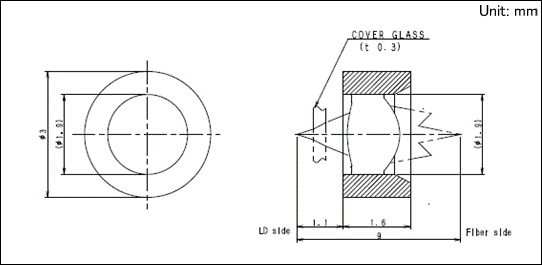 ALPS非球面透鏡· 光(guāng)纖耦合系列FLAA1SG0BA設計(jì)波長(cháng) λ(nm) 1,310 适用(yòng)波長(cháng)示例 λ(nm) 1310/1550 Fiber 0.10 倍率M 4.0 焦點距離(lí) f(mm) 1.37 L1[WD](mm) 1.10 L2(mm)6.30 OI[DF](mm)9.00 目标效率-3dB≧