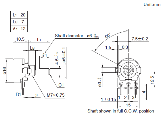 ALPS 旋轉電(diàn)位器(qì)(金(jīn)屬軸) RK163系列RK1631110U1Q