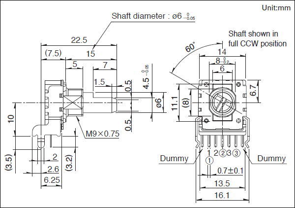 ALPS 旋轉電(diàn)位器(qì)(絕緣軸)RK14K系列RK14K12B0A0E