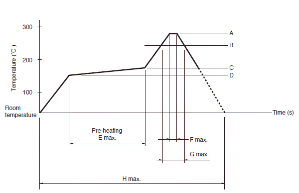 本産品, 在隻有(yǒu)紅(hóng)外(wài)線的(de)回流焊接爐中, 有(yǒu)焊接不(bù)附著(zhe)的(de)可(kě)能(néng), 所以請(q→ǐng)使用(yòng)溫風(fēng)回流焊接爐, 或紅(hóng)外(wài)線+ 溫風(fēng)回流焊接爐。
