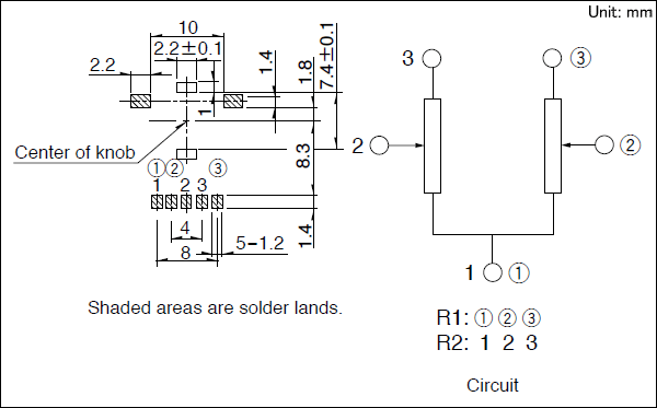 将軸(操縱杆)放(fàng)置在端子(zǐ)1側的(de)終端,測量端子(zǐ)1和(hé)2之間(jiān)的(de)電(diàn)阻值。然後,把軸(操縱§杆)放(fàng)置在端子(zǐ)3側的(de)終端,測量端子(zǐ)2和(hé)3之間(jiān)的(de)有(yǒu)抽頭的(de)時(shí),旋轉(移動)軸(操縱杆),測量抽頭 與端子(zǐ)2間(jiān)的(de)最小(xiǎo)電(diàn)阻值。
