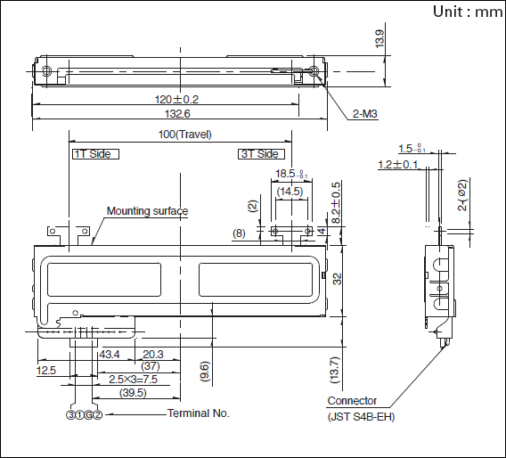 測量将軸(操縱杆)從(cóng)端子(zǐ)1側的(de)終端位置轉到(dào)端子(zǐ)3側的(de)終端位置(移動)時(shí)的(de)旋轉↓角度(移動距離(lí))。