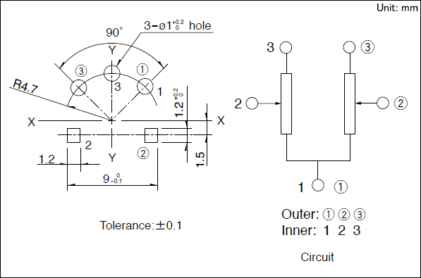 将軸(操縱杆)放(fàng)置在端子(zǐ)1側的(de)終端,測量端子(zǐ)1和(hé)2之間(jiān)的(de)電(diàn)阻值。然後,把軸(操縱杆)放(f↕àng)置在端子(zǐ)3側的(de)終端,測量端子(zǐ)2和(hé)3之間(jiān)的(de)有(yǒu)抽頭的(de)時(shí)→,旋轉(移動)軸(操縱杆),測量抽頭與端子(zǐ)2間(jiān)的(de)最小(xiǎo)電(diàn)阻值。